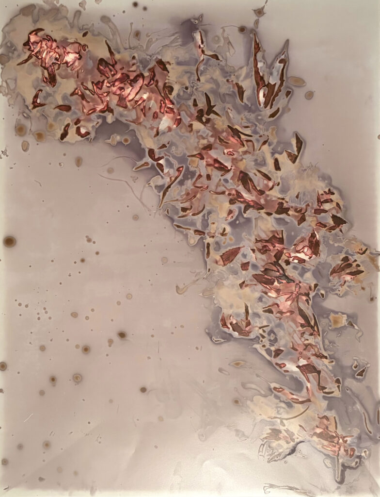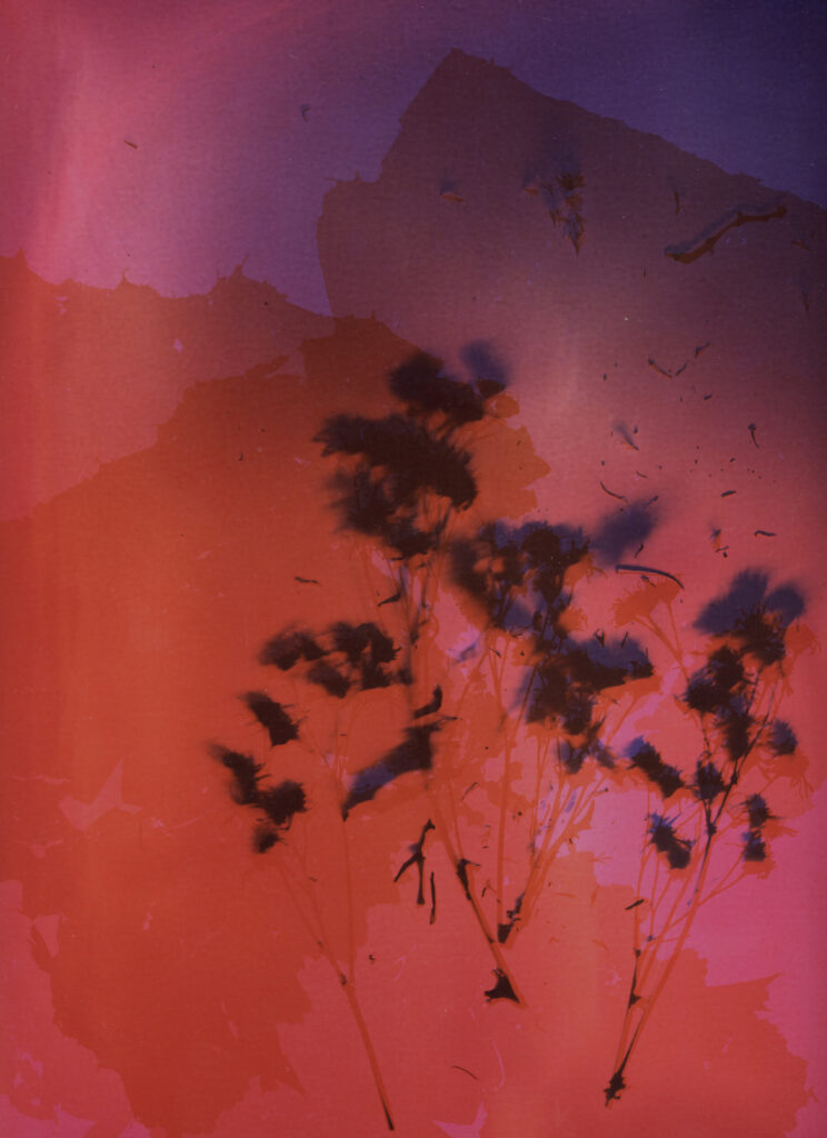 doppelbelichtung auf altem filmlochkamerabildcyanotypie von kunststoffpelletsbrunnen in bordeaux, detaillumenprint einer blattlausfotogramm auf farbpapierchlorophyllprint auf efeublattanthotypie, brombeerblätter auf randenphytolumen, cannabis auf altem papier